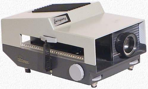Liesegang Fantax-Vollautomat 500, für Kleinbild Dias, mit Projektionsobjektiv Patrinast 1:2,8/85 von Ed. Liesegang, Düsseldorf, sowie vollautomatischer Fernbedienung, fernsteuerbarer Bildschärfe-Feineinstellung, zwei Motoren und vier verschiedenen Arten des Diawechsel. Mit dem eingebauten Timer sind vollautomatische Diawechsel im 7,5, 10, 15, oder 30 Sekunden Intervall, mit 36 oder 50 Dias, möglich. Der 5,8 Kilogramm schwere Projektor ist, da ein Kühlgebläse eingebaut ist, mit einer 220V / 500 Watt Birne ausgestattet. 1961 kostete er mit Birne 399.- DM.