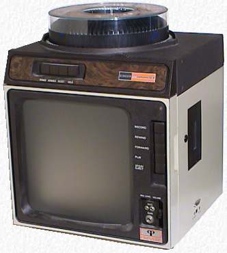 Singer Caramate II Model 8838. Transportabler Präsentationsdiaprojektor, mit eingebautem Bildschirm, für Kodak Carousel Diamagazine, sowie mit eingebautem Toncassettenlaufwerk mit dem Sprache u. Musik aufgenommen und wiedergegeben werden kann, als auch Signaltöne für den automatischen Diatransport aufgenommen werden können.